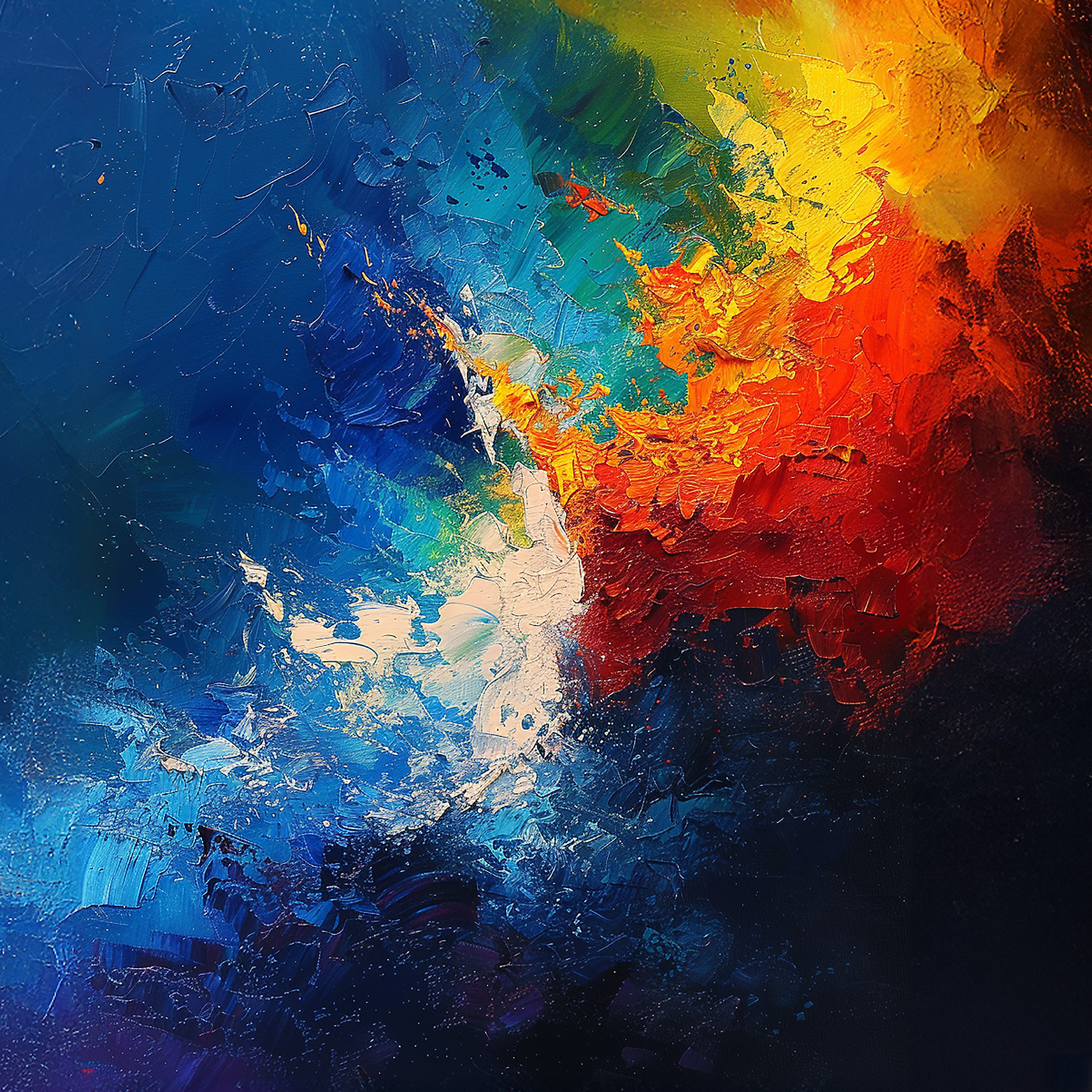Met AI ontworpen digitaal beeld, bewerkt met Photoshop en artistieke technieken, geprint op canvas.